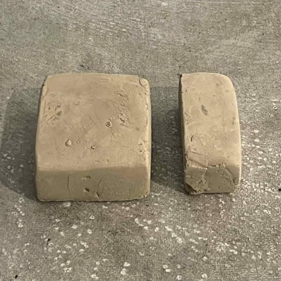 木曽漆器の産地で古くから漆下地に使われてきた「木曽錆土」。砥の粉と同じく、水練りしてから下地用の生漆と混ぜて錆漆を作ります。鉄分が多く、より強度が高いと言われ、昔から木曽漆器の強靭な下地に使われてきました。今では作る人がおらず、入手できない貴重な商品です。